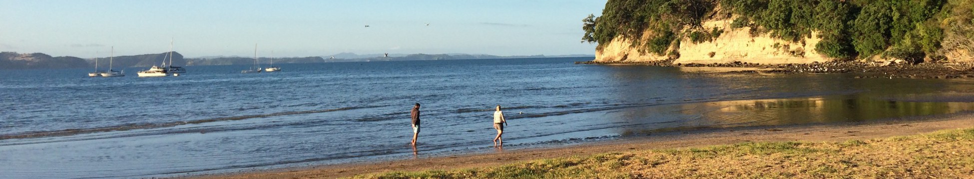 So here I am at the golden hour pretending I’m out for a healthy morning walk. Really, I’m out people watching today and I have been here waiting for just the right light and just the right scene to grab me and cause my insides to leap with excitement. Most mornings, I pound my way along the beach, clamber up the steps along the cliff face you see in this picture and carry on walking uphill to Ardern Road where I stop at the look out point beside a rather opulent house. No, it’s not the house I’m interested in. It’s the wonderful play of light and colours I see out on the water and the beach below. It’s the exuberant chocolate spaniel that leaps over the waves as they roll in to shore and the little pooches and their ambulant owners that capture me.